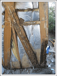 ■現在、リフォーム工事をしているのですが、外壁をはがしたら柱、土台、筋かいが腐れて、シロアリに食べられていました。
